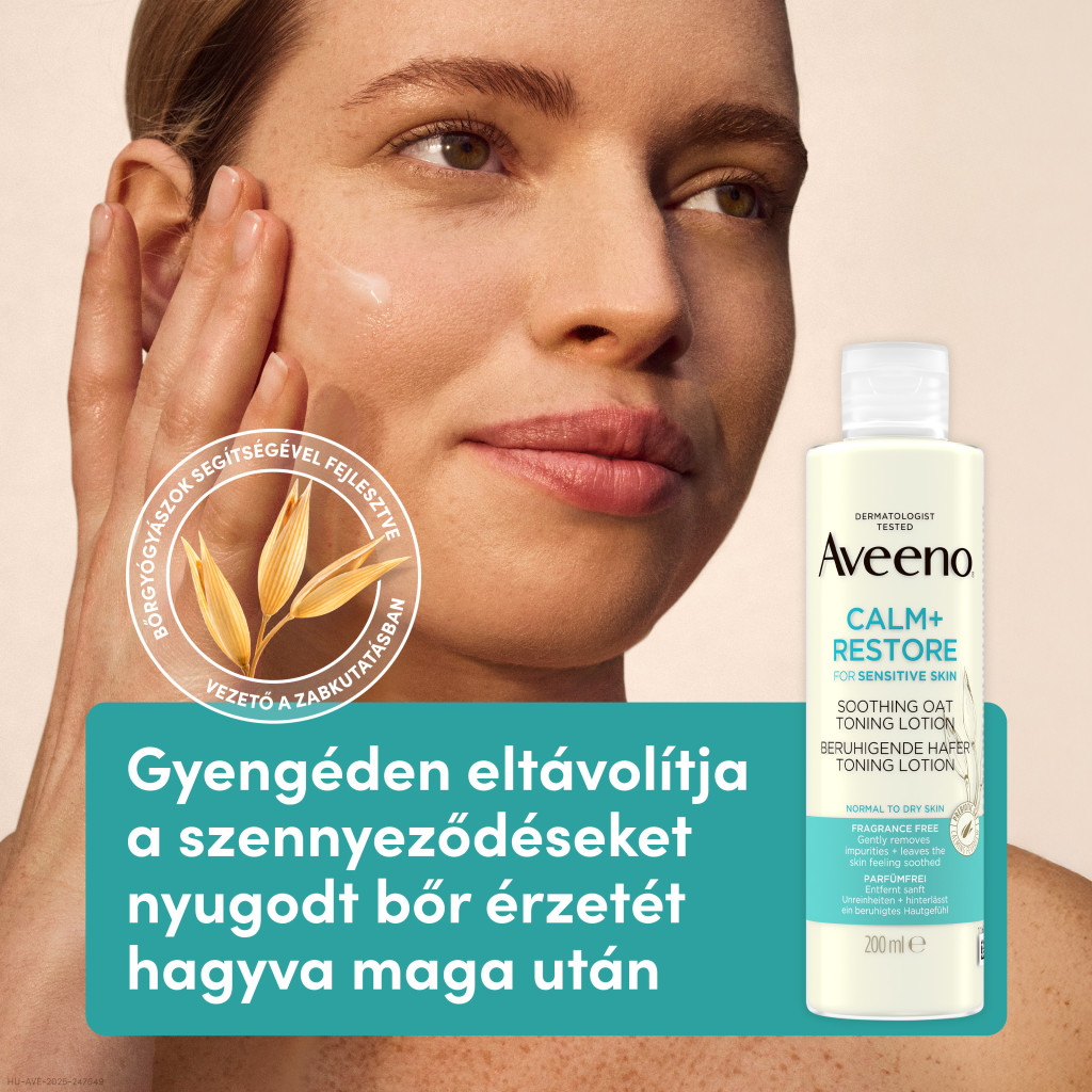 Egészítse ki arcápolási rutinját az Aveeno® Calm + Restore™ zabot tartalmazó tonizáló lotion-nal. Az Aveeno® érzékeny bőrre ajánlott, illatmentes lotion-je gyengéden távolítja el az olyan maradványokat mint a smink és a szennyeződések, az arcbőrnek pedig kellemes tisztaságot és frissességet kölcsönöz. Segít kiegyensúlyozni a bőr pH-értékét, megnyugtatni az arcbőrt, helyreállítani a nedvességésében egyensúlyát, továbbá előkészíti a bőrt a szérum és a hidratáló krém alkalmazására.