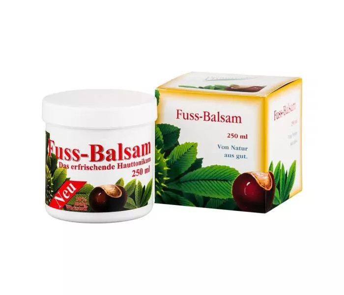Bőrfrissítő krém a fáradt láb ápolására. A készítmény fő hatóanyagai: Vadgesztenye-, árnika-, körömvirág-, hamamelisz-kivonat, citrom-, menta-, levendulaolaj.