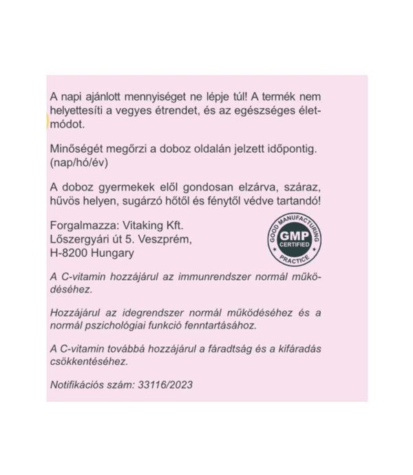 A Vitaking Instant Supreme C vitamin por egy kivételesen ízletes C-vitamin, citrus bioflavonoidokkal és szeder gyümölcslé szárítmánnyal dúsítva az élvezetes ízért. Kiváló választás az édes üdítőitalok helyettesítésére napközben (egészségesebb és költséghatékonyabb), és gazdag C-vitaminban a szervezet számára. Gazdaságos, 150grammos kiszerelés, remek ár-érték aránnyal.