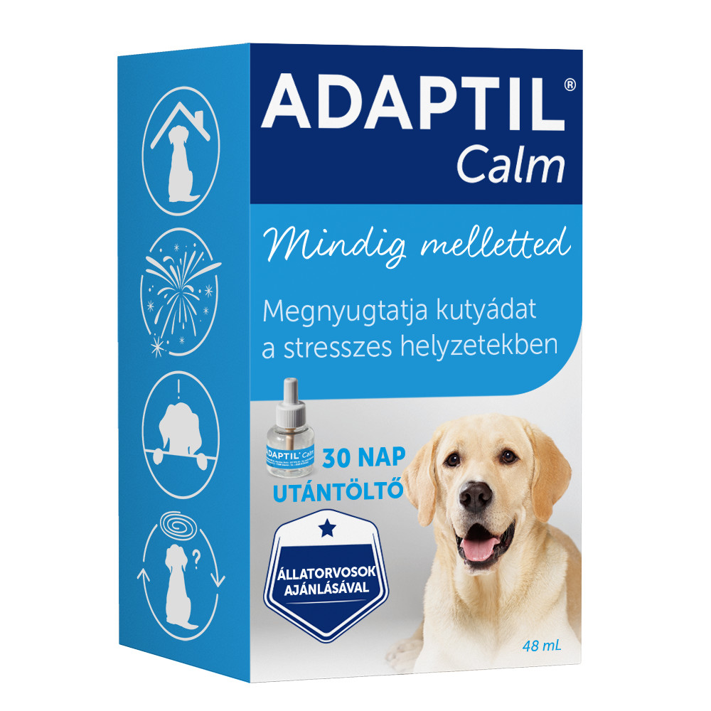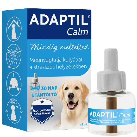 Ceva Adaptil Párologtató utántöltő kutyáknak – Az Adaptil egy olyan termék, amely a kutya ún. appeasing feromonjának mesterséges változatát tartalmazza, és ezáltal segít megoldani, illetve megelőzni a kölyök és felnőtt kutyák félelemmel és nyugtalansággal kapcsolatos vagy más stresszhelyzeti problémáit.