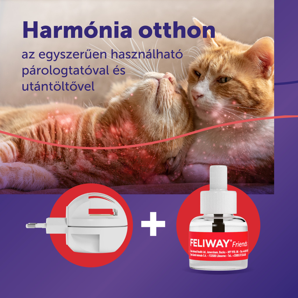 A FELIWAY FRIENDS egy könnyen alkalmazható megoldás az együtt élő macskák közötti konfliktusok csökkentésére, hogy elkerülhető legyen a verekedés, üldözés, akadályozás, bámulás.