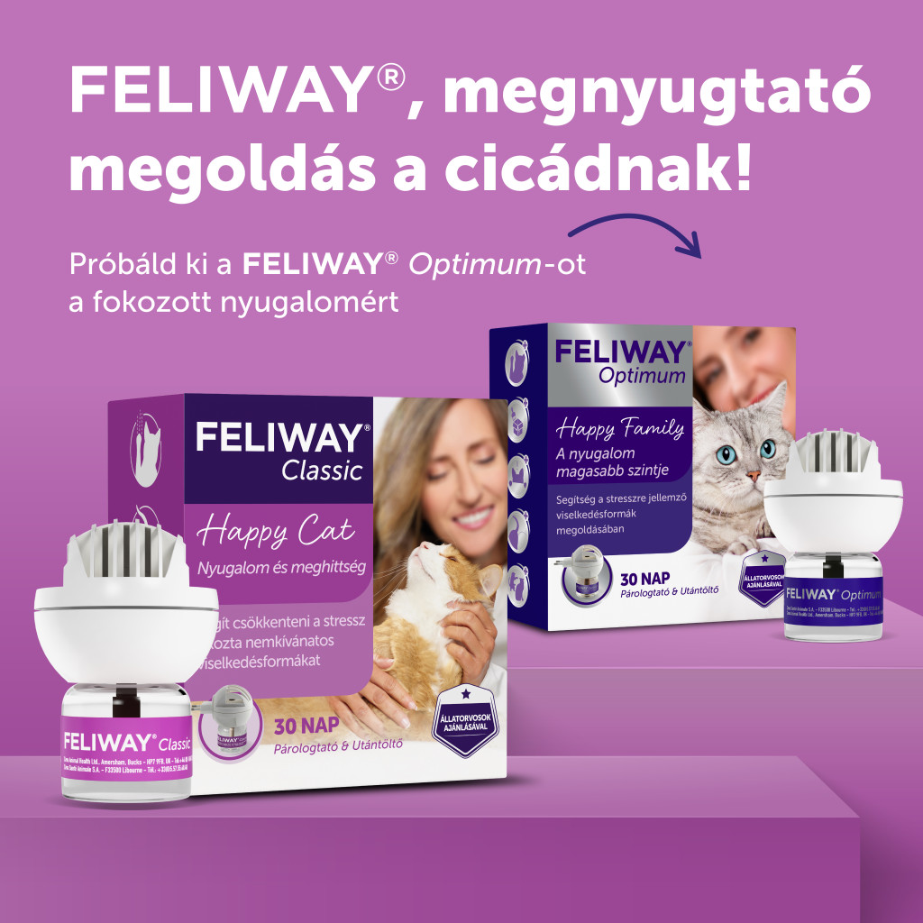 A FELIWAY FRIENDS egy könnyen alkalmazható megoldás az együtt élő macskák közötti konfliktusok csökkentésére, hogy elkerülhető legyen a verekedés, üldözés, akadályozás, bámulás.