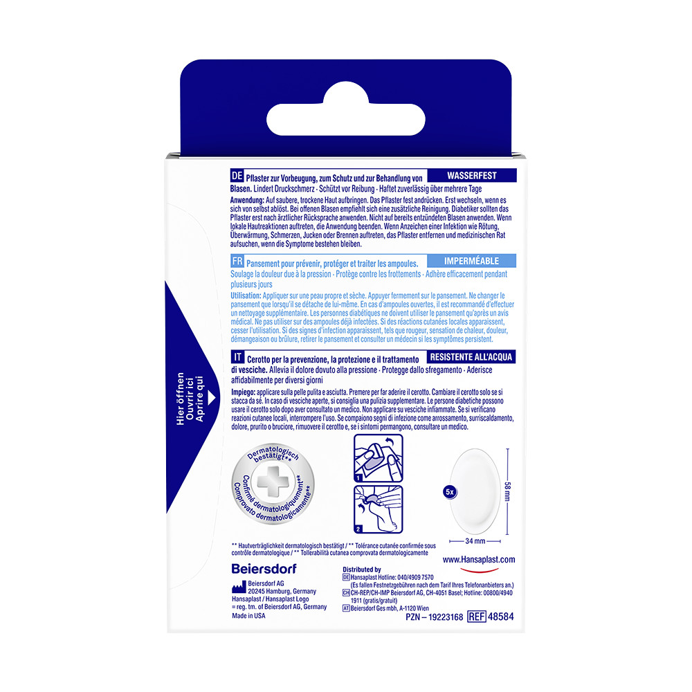 Hidrokolloid gél párnájának köszönhetően megvédi az érintett bőrterületet és csökkenti a fájdalomérzetet. A vízhólyagtapasz védelmet nyújt a cipőnyomás ellen is, segít a további bőrkárosodás megelőzésében és védi a bőrt a piszok és a baktériumok ellen, melyek a tapasz használata nélkül a sebbe juthatnának.