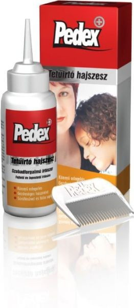 50 ml-es tetűirtó hajszesz; Pedex termék fejtetű és serkék eltávolításához.