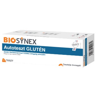 Cöliákia szűrésre alkalmas. Eredmény 10 perc alatt, 1 csepp ujjbegyvérből. 96,7 %-os megbízhatóság. A Biosynex glutén önellenőrző teszt segít kimutatni az antitesteket, amelyeket a szervezet specifikusan a cöliákia által termel.