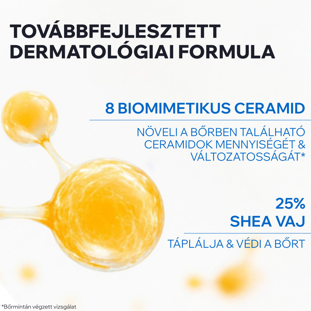 ÖSSZETÉTEL: 8 BIOMIMETIKUS CERAMID + 25% SHEA VAJ